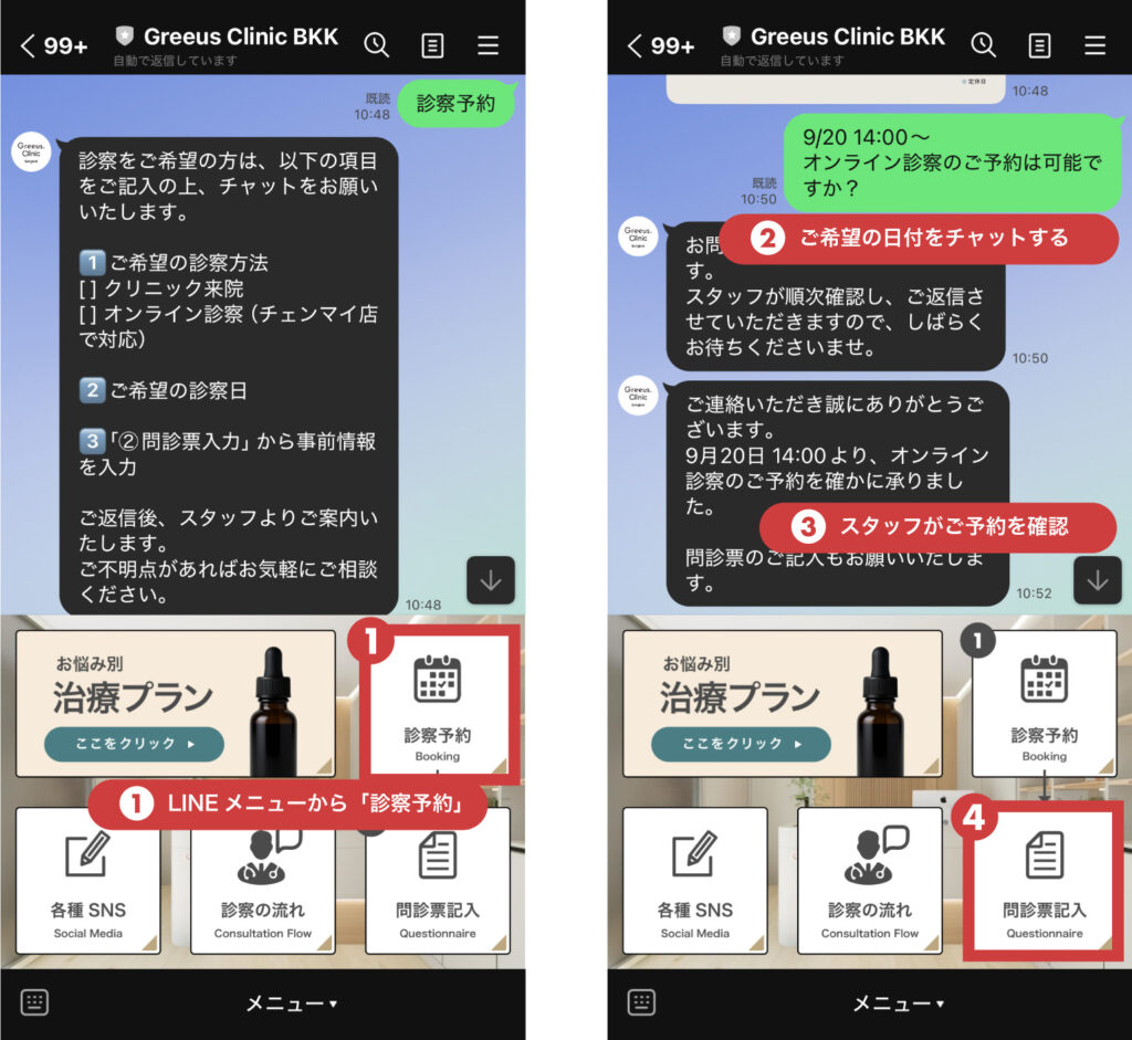 • オンライン診察は原則チェンマイ店での対応となり、お支払いは店頭でお願いしております。