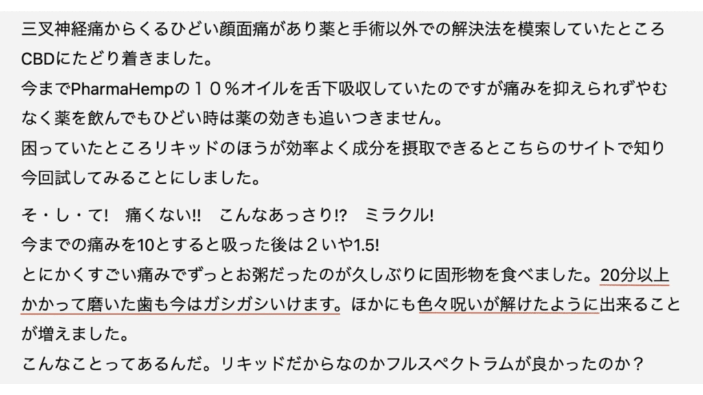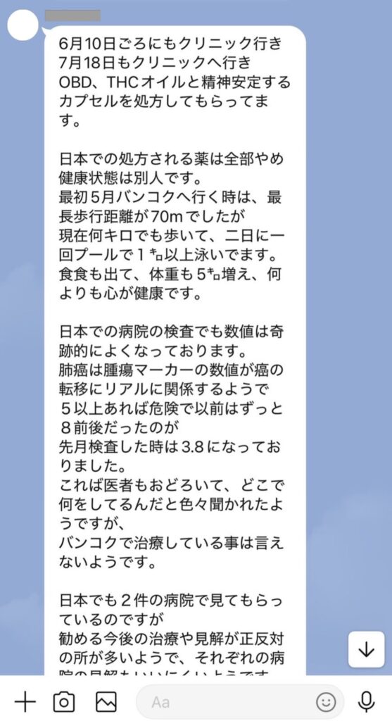 相談内容は、リラックス目的でCBDを使う人々とはまったく違う、命の現場に近いものでした。